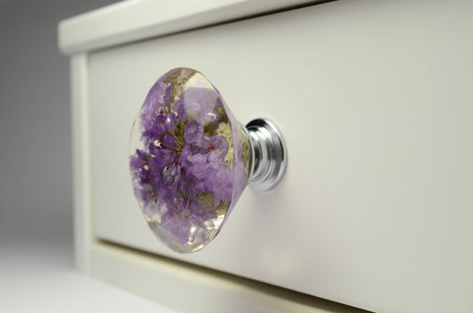 Big Diamond Shape Furniture Knob With Real Purple Flower - Special Gift