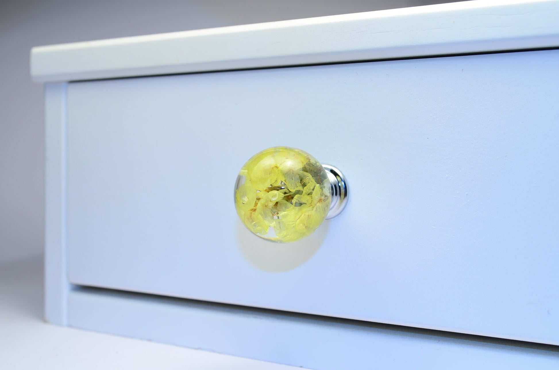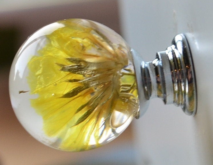 Yellow Cabinet knobs , Yellow Real flower Resin Furniture Knobs , Door Knobs
