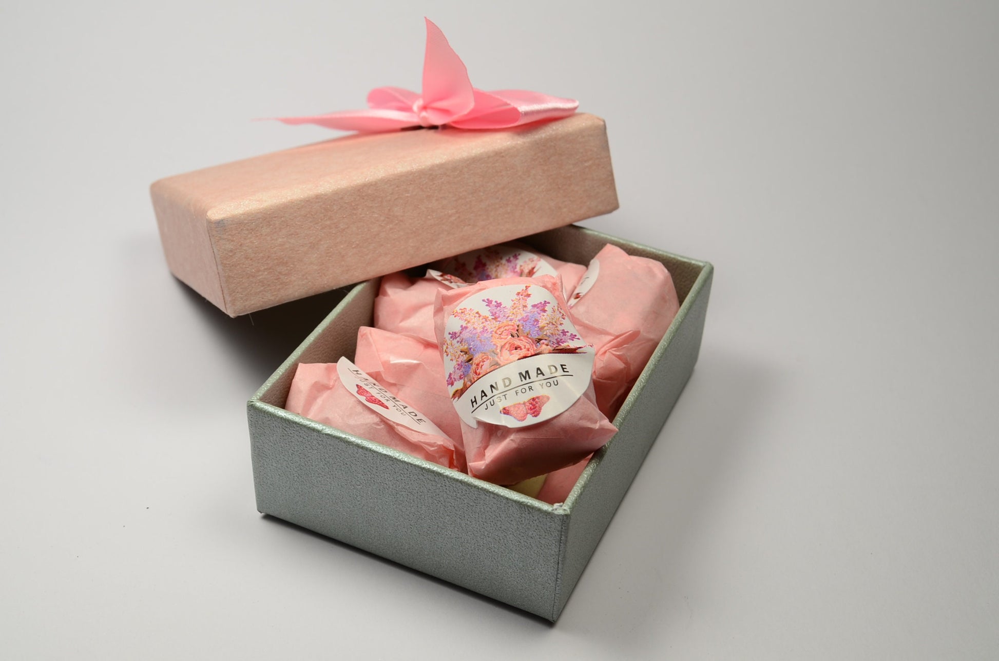 Each knob wrapped in nice paper with a label "made just for you". All 6 knobs packed in a gift box ready to be given.